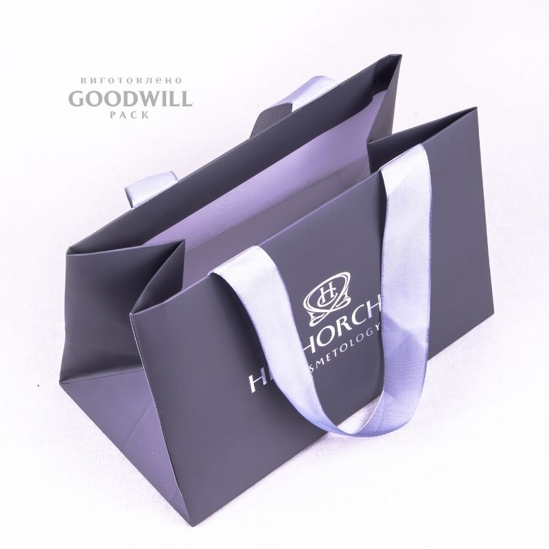 Вклеюються ручки із репсової чи атласної стрічки шириною від 1 см до 7 см, в залежності від розміру пакета та концепції. Колір мажна вибрати. Надаються каталоги.